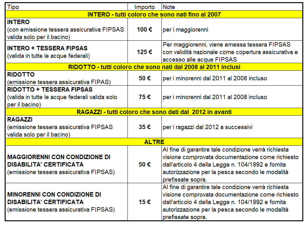 La presente per avvisare i Soci e tutti gli interessati che con seduta di consiglio del 22 gennaio sono state deliberate le quote associative per la stagione 2026, come da tabella che segue.