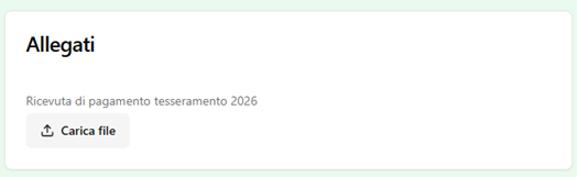 Nel caso sia disponibile la ricevuta di pagamento potrà venire essere alla domanda, altrimenti dovrà essere consegnata al momento del ritiro del tesserino associativo come conferma di pagamento della quota sociale.