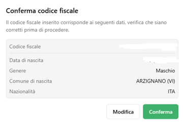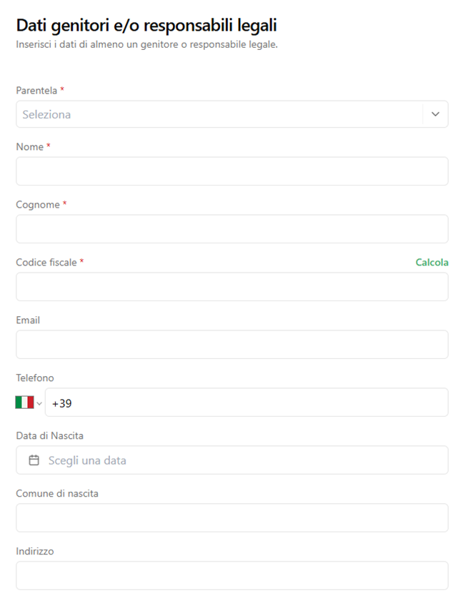 E’ richiesto obbligatoriamente, per legge, il codice fiscale. Se al momento della compilazione non ci si ricorda il codice fiscale è possibile calcolarlo, e non sarà consentito l’inserimento di codici non corretti.