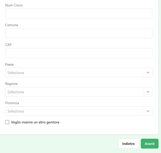 Se si tratta di un socio minore vanno obbligatoriamente indicati i dati anagrafici del genitore, o di entrambi selezionando l’apposita opzione “voglio inserire un’altro genitore”.