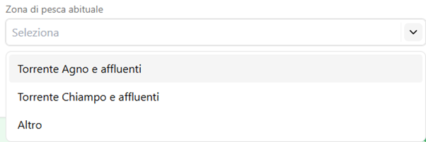 - Zona di pesca abituale selezionare tra Agno, Chiampo o altro: