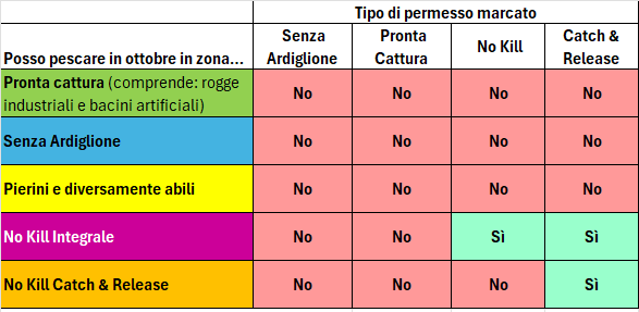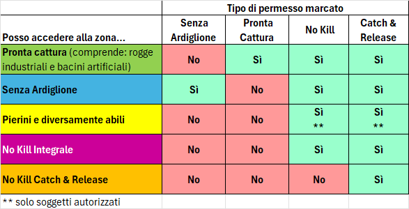 Perché chi segna nokill pesca con artificiali e l’accesso non è ammesso in C&R. Per accedere a C&R bisogna aver marcato permesso C&R pertanto essere in possesso di attrezzatura idonea solo per la pesca a mosca/tenkara.