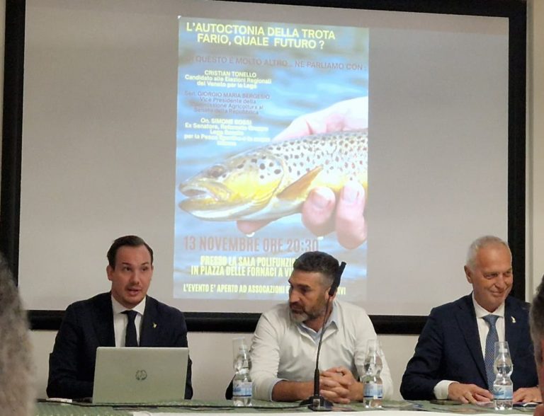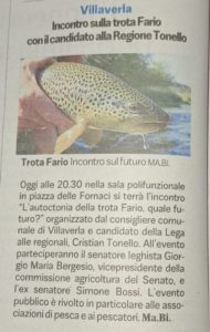 il 13 Novembre eravamo a Villaverla per una serata organizzata da nota formazione politica con a tema “l’autoctonia della trota fario, quale futuro?” con la presenza del Sen. Bergesio vicepresidente della commissione agricoltura del Senato  del ex. Sen. Bossi. Chiaramente non ci si aspettava nulla di nuovo, e così è stato (e la discussione è presto sfociata in altri argomenti non pertinenti) , ma è importante come Associazione direttamente interessata essere in presidio anche in incontri di questo tipo, dove eravamo anche questa volta, una numero importante rispetto ai presenti.